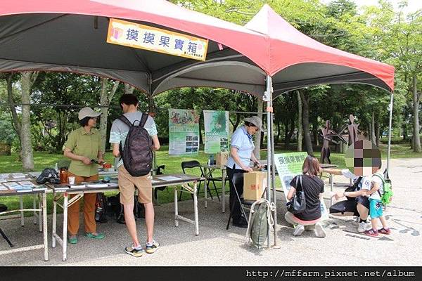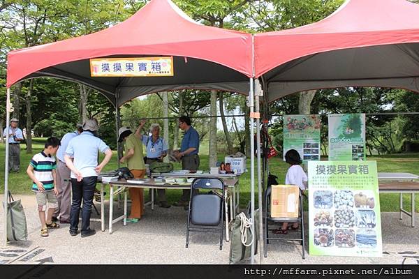 身為中區環教聯盟成員的臺大山地實驗農場,於14.05.25參與了於台中都會公園舉辦的「中區環境教育場所聯盟合作備忘錄簽訂儀式」,並與眾多中區環盟的夥伴們一起闢設了環境教育闖關活動的攤位,而臺大山地實驗農場的闖關關名為「摸摸果實箱」,即為春之饗宴期間種子站的活動之一,透過觸覺的體驗,讓孩子及大人們,利用手來認識種子。更擺設了臺大山地實驗農場的各式出版品,如精美的鳥明信片、細緻的一葉蘭萬用卡、可愛的鳥貼紙,以及解說出版品:《森林的蕈息》、《森谷幽蘭》等。