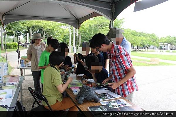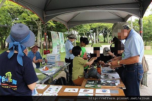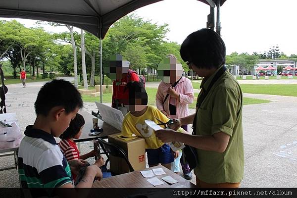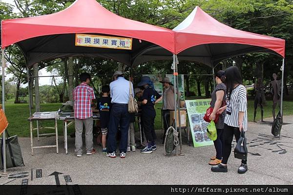 另外,宣傳臺大山地實驗農場各式活動的翻翻方塊,則受到不論是志工老師、大朋友及小朋友們的喜愛。擁有八個圖案的翻翻方塊,有基礎題、進階題及挑戰題,大家一路過關斬將,完成八個圖案的人就心滿意足的打算將翻翻方塊帶回家考考自己的家人、朋友或同學;一直無法突破的朋友,就專注執著地停留在臺大山地實驗農場的攤位處,甚至是乾脆坐了下來,就是想把圖案拼出來。而拼出來的朋友,也大方的指導還未拼出來的朋友,甚或是三三兩兩討論起來,形成了有趣的畫面。
