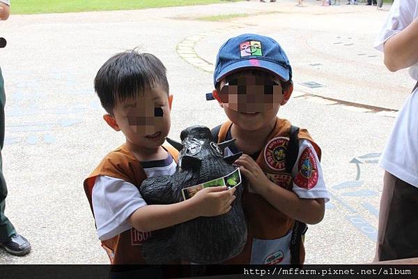 小朋友們很喜歡臺大山地實驗農場工作人員所創作的山豬紙偶。