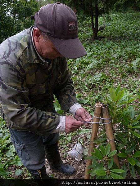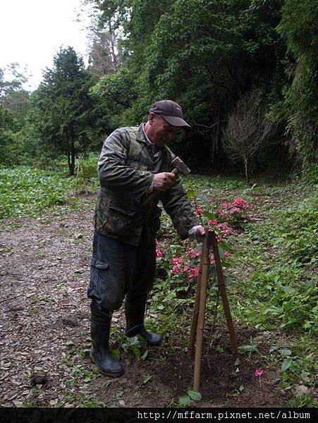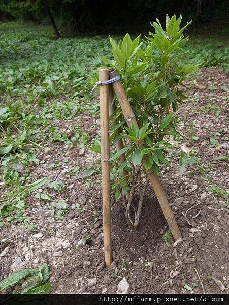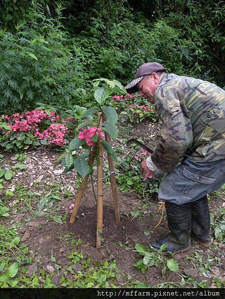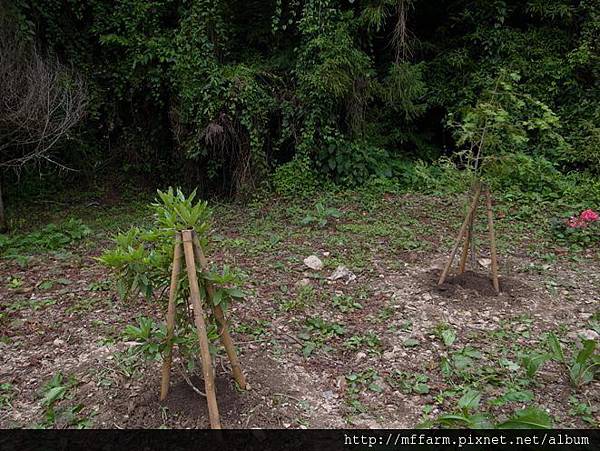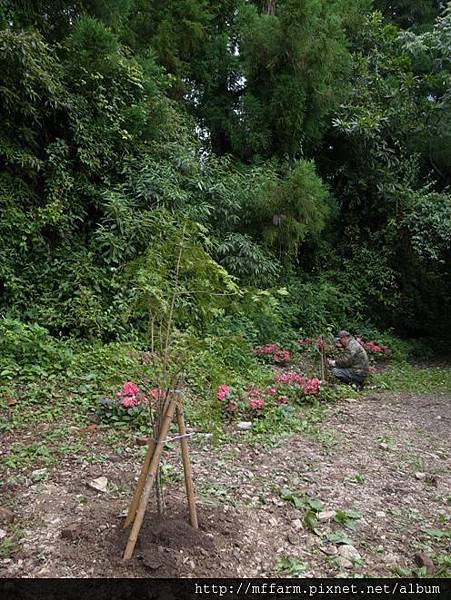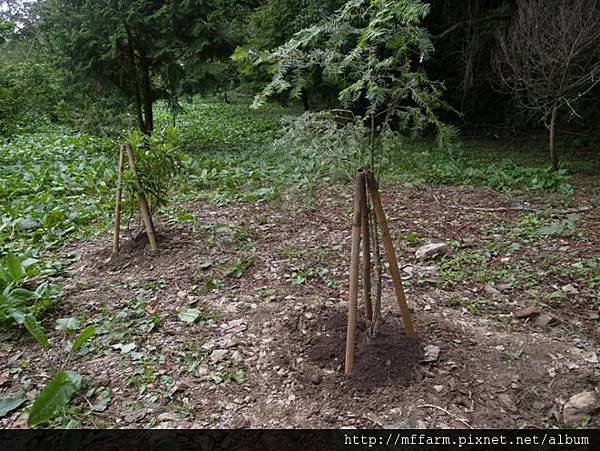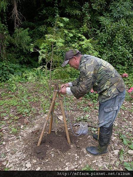 烏毛大哥貼心的幫種下的樹用竹管加固。