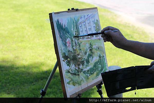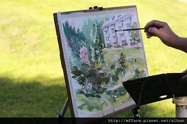 二十多年前因緣際會前來梅峰的畫家李文增老師,在臺大山地實驗農場裡留下了一批美麗的畫作,陪伴著臺大山地實驗農場的員工及前來農場參與活動的學員們度過了這二十多年來的每一天。2014年7月6日至7日,好久不見的李老師,與其女兒和孫子,再訪梅峰。隨處都可作畫的李老師,旋即在黑水塘畔,正在盛開的愛情花旁畫起了黑水塘景緻;隔日清晨,換了個角度,則揮就了一張教展中心與黑水塘的畫作;7日上午,佇立在白楊步道中,描繪了薰衣草田在藍天下的風景。李文增老師作畫速度極快,將所思所想、心思意念及當下的氛圍情境都融入了畫作中,留給了臺大山地實驗農場一批極為豐富的藝術作品,目前已陳列於教展中心一樓多功能會議室,歡迎大家可以前往參觀、聆賞。