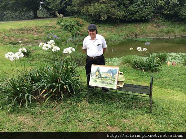 在黑水塘畔與作畫中的李文增老師合影留念。