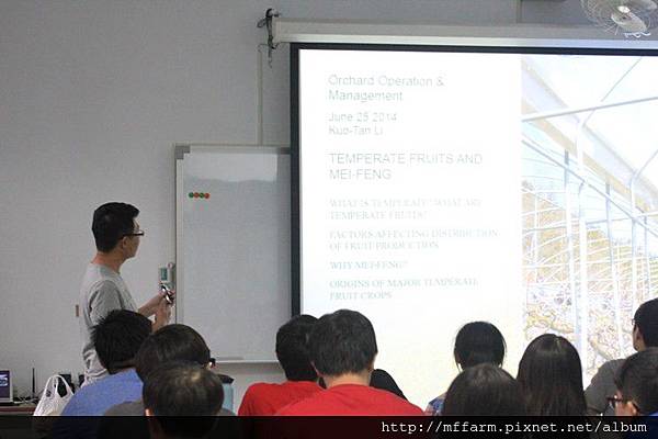 暑假來臨,在6月23日至7月2日,臺大園藝系的同學們就來到臺大山地實驗農場的春陽分場與梅峰本場進行實習,使農場增添了不少的熱鬧氛圍和活力。園藝系的「園場操作與實習」課程,內容非常扎實、豐富,讓同學們在十天的實習課程中,都迭有收穫。除了由專業解說員帶領的園區導覽、早安賞鳥與夜間觀察等課程外,也有實作部分的「主題園整理」、「種苗、番茄管理」、「大平台景觀維護」、「一葉蘭田間操作」、「果樹實務操作」、「花蔬田間操作」等課程。而夜間更邀請學有專精的老師們前來與同學分享許多主題講座:由賽德克族文史研究者,賽德克‧巴萊電影顧問郭明正老師主講的:「賽德克族的植物利用」、綠生農法創始人星野忠義老師主講的:「友善環境的農業」、唐山園藝程婉妤小姐主講的「綠色生活與香草栽培與管理」、行政院農委會農業試驗所花卉研究中心戴廷恩主任主講的「臺灣花卉產業與城市綠美化」、由臺大園藝系李國譚老師主講的「溫帶果樹」、台中合樸農學市集陳孟凱老師主講的「社群協力農業(CSA)─把最爛的變成最美的─合樸經驗」等。十天的實習很快就畫下了句點,但屬於這十天的美好,卻將陪伴著同學們一輩子,而成為生命中最值得懷念的一部分回憶!
