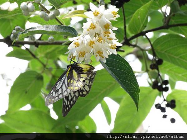今年的大葉溲疏很慢才開花,一開花就吸引鋸粉蝶前來,以前也看過緋蛺蝶和劍鳳蝶前來吸蜜,所以大葉溲疏可是在梅峰春天的蜜源植物。