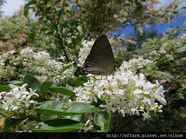 ※5月底開始梅峰的蝴蝶種類變多,這和幾種蜜源有關(大葉溲疏、玉山假沙梨、女貞)特別是女貞有著濃郁香味,吸引許多昆蟲前來,包含日行性蛾類。
