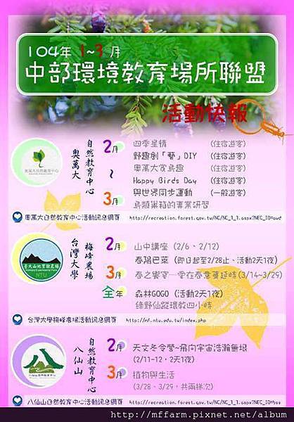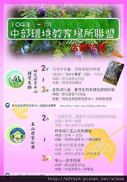 中部環境教育聯盟將幾個環境教育場所1~3月有舉辦的活動,