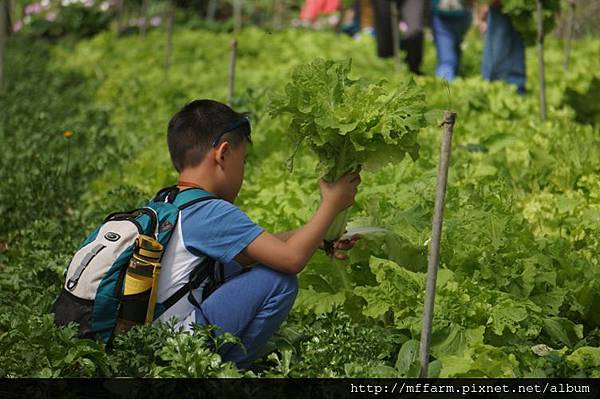 親手拔起鮮嫩欲滴的青菜。