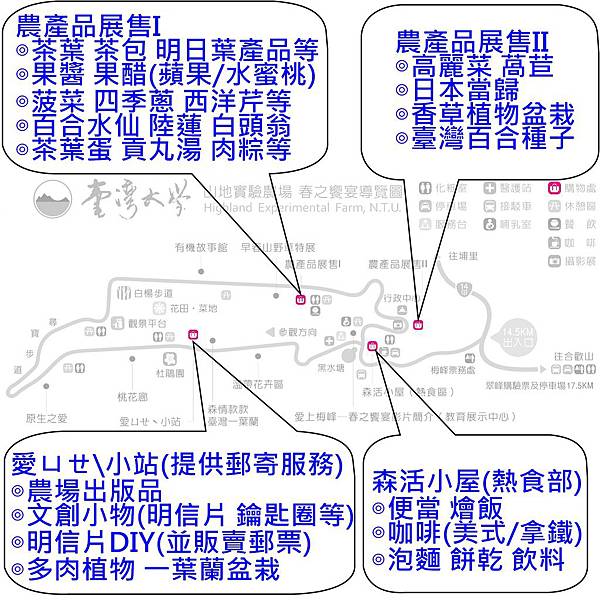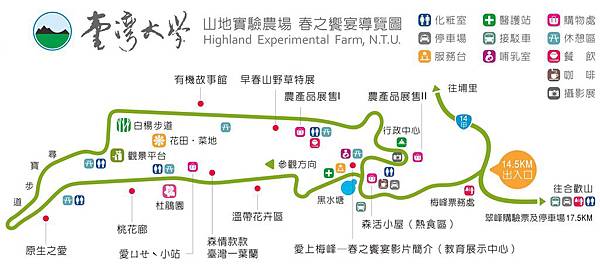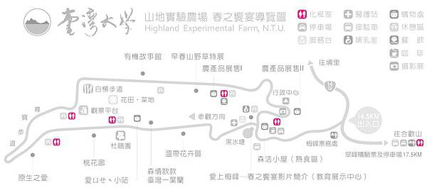 <2015春之饗宴 廁所地圖> 在 翠峰、展售部旁、杜鵑園對面、桃花廊與奇異果區中間、觀景平台、農產品展售I旁 都有設置廁所喔!