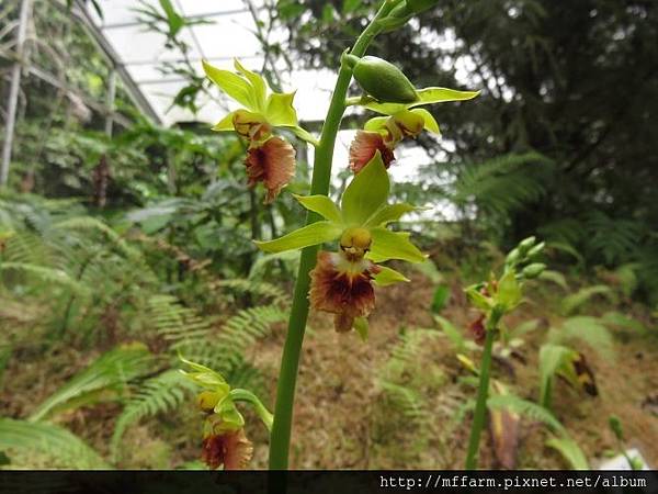4/12 馬鞭蘭 花期剛開始,許多朵花只是微開。 (梅峰蘭園,阿土攝)