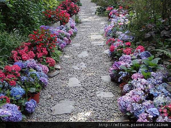 美麗的繡球花將花園長廊點綴的美輪美奐。