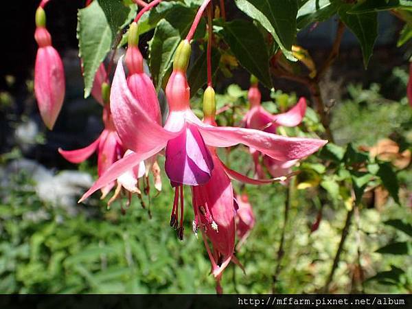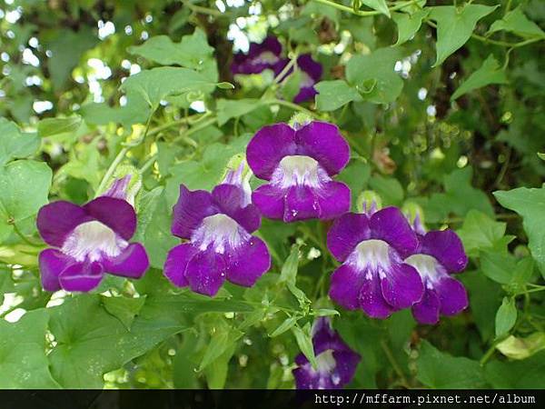 蔓性風鈴花叮叮噹噹的掛在花園中。