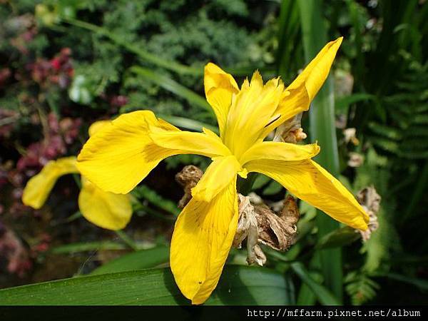 黃花水生鳶尾美麗的花吸引不少人在水池旁圍觀。