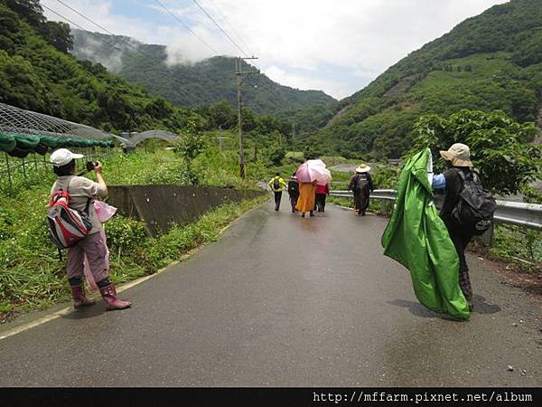 從武令山回程,陽光露臉,同仁們紛紛脫去雨衣。