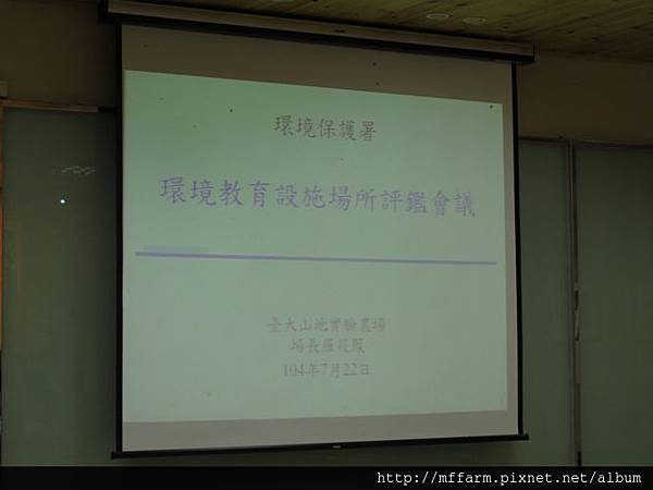 在2015年7月22日的評鑑前,仍由負責環境教育設施場所評鑑行政業務的陳俐璇小姐持續檢視、修正環境教育團隊所共同完成的評鑑相關文件,環境教育團隊並協助在評鑑前,將評鑑會場布置完成,並分配評鑑當日動線、課程操作人員,及支援人力。評鑑當日,在羅筱鳳場長、李美玲副場長、主計陳岳鋒主任及教研組張耀乾組長等長官的帶領及支持之下,全體環境教育團隊人員共同順利完成20150722下午臺大山地實驗農場的環境教育設施場所評鑑。也特別感謝環訓所工作人員、參與環境教育設施場所評鑑的委員們,以及南投縣環保局工作人員的蒞場指導及辛勞。