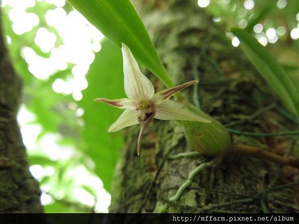 8/15 毛唇玉鳳蘭,花期剛開始。(梅峰蘭園,阿土攝)