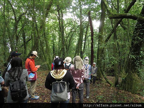 第一天下午,由解說員曾祥霖先生帶領夥伴們進行自我介紹後,帶入臺大山地實驗農場土地利用的概念,之後便緩步往原始林前進,在途中進入農場早期的歷史建物「紅房子」內,進行土地利用的小遊戲後,繞行原始林一圈返回出發點,讓我們對人造林及原始林擁有更完整的體驗與瞭解。