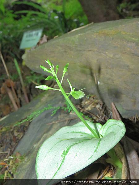 9/11溪谷區心葉羊耳蒜綻放一朵,9/21慘遭某生物襲擊,花朵被咬斷了,檢附受害照兩張(蘭園山谷區,祥霖攝)