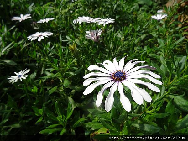 各個品種的藍眼菊(白藍菊)花瓣或花色都不太相同。