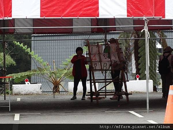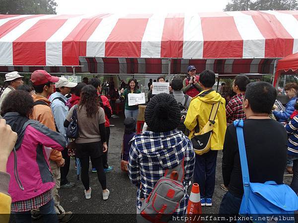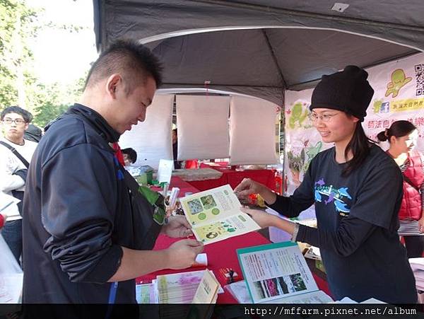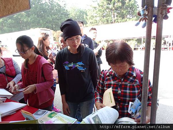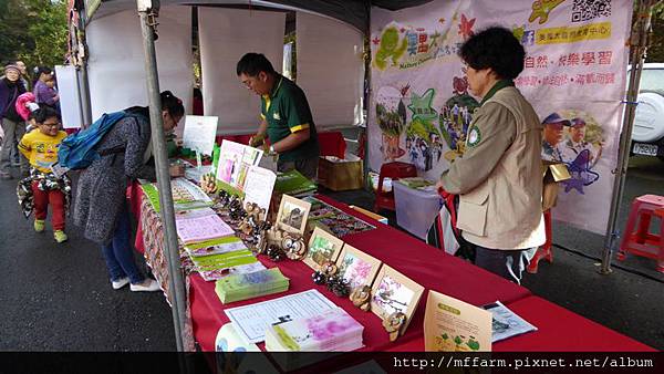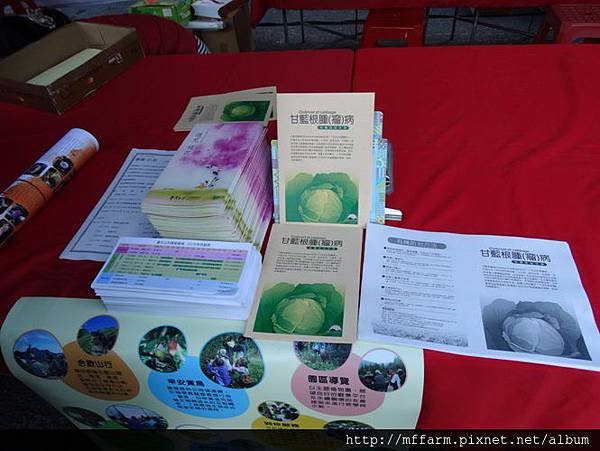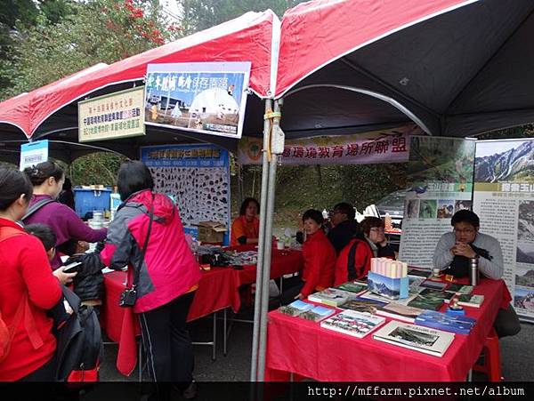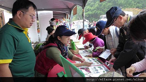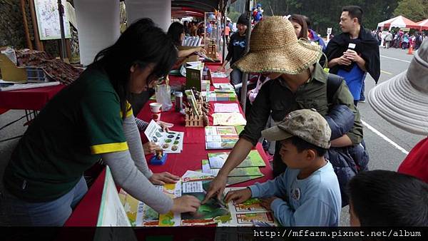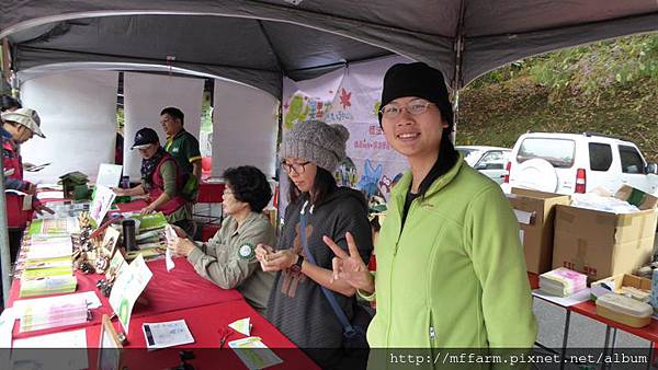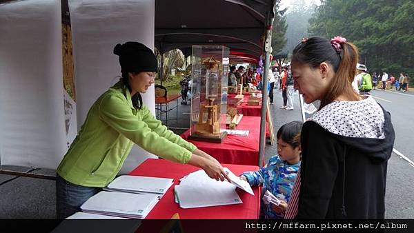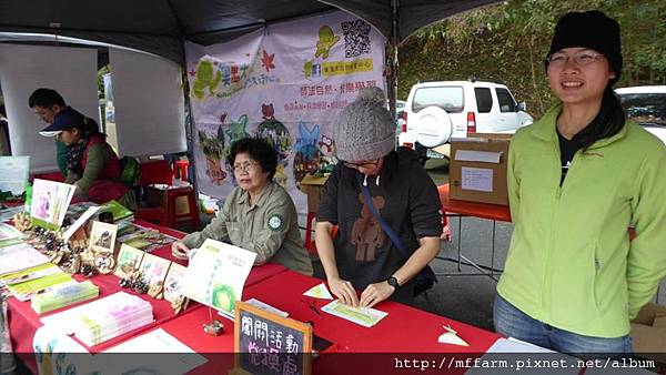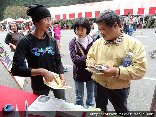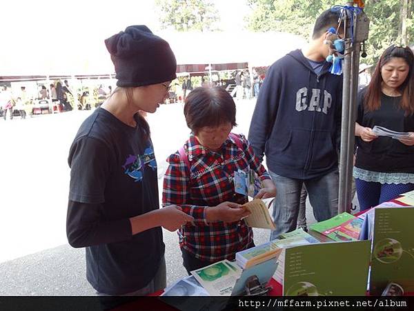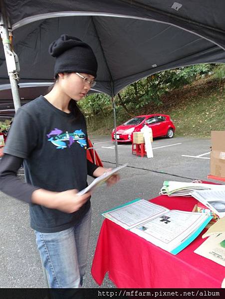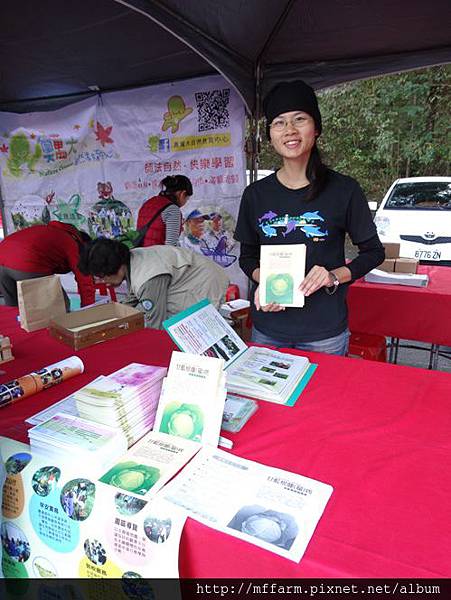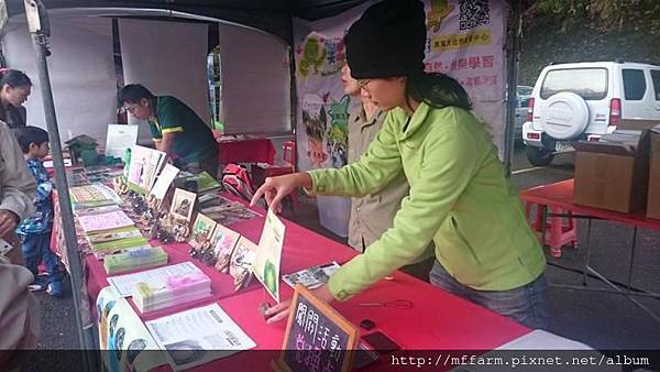 臺大山地實驗農場的楊亞蒨小姐準備擺攤資料中。