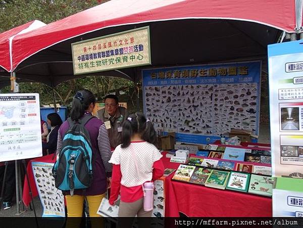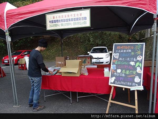 由臺大實驗林主辦的竹文化節,於2015年12月5至6日邀集中區環教聯盟的夥伴們擺攤進行共同行銷宣傳,中區環盟夥伴計有中教大環教碩班、八仙山自然教育中心、林務局東勢處育樂課、玉山國家公園管理處、特生野生動物急救站、特有生物研究保育中心、特有生物研究保育中心、梅峰、奧萬大自然教育中心、彰化縣政府綠色環境學習營地、臺中都會公園、國立科學博物館車籠埔斷層保存園區、地震教育園區、自然科學博物館、鳳凰谷鳥園生態園區、溪頭自然教育中心、友達光電股份有限公司台中廠。臺大山地實驗農場與八仙山自然教育中心、奧萬大自然中心一起擺攤,以鳥類為主題進行宣傳。就讓我們來看看這兩天的一些精采畫面吧!