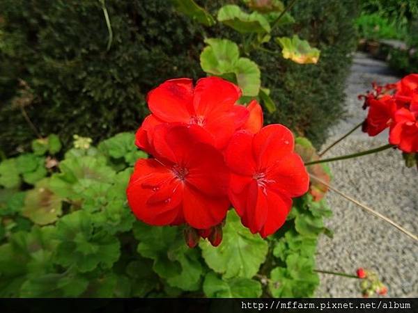 大紅色配上鮮綠色的天竺葵。