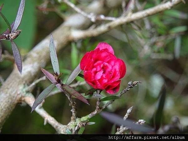 像是迷你玫瑰花的松紅梅。