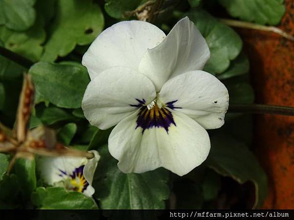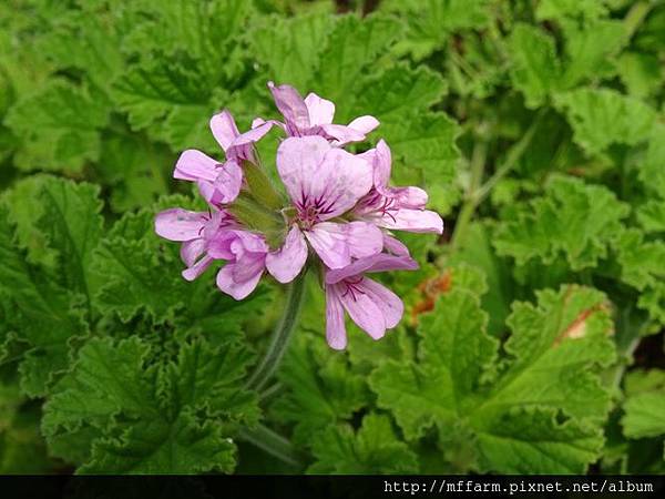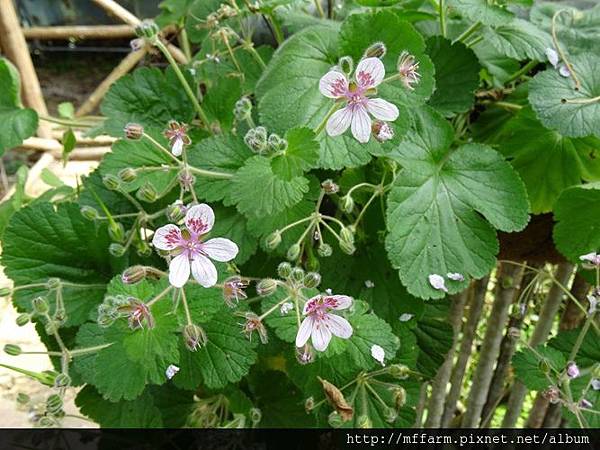 白中透紅的菫花天竺葵。