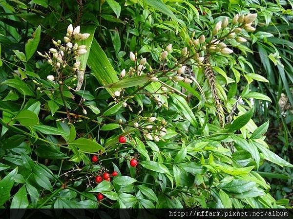 南天竹一串串花序向上翹。