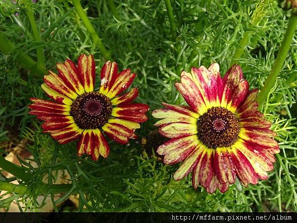 花環菊的色澤有點像是用粉筆畫上去的。