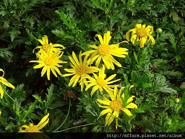 亮晃晃的黃翠菊(銀葉情人菊)。