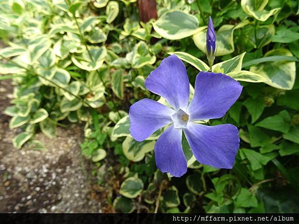 蔓常春花的花好像要旋轉飛出去了一樣。