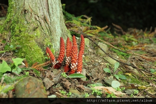 部分寄生植物就像人類肚子裡的蛔蟲,需從宿主身上獲得水及養分存活,屬全寄生植物,這類植物總喜歡以鮮豔的顏色宣示著生存的勝利,夏季森林底層冒出來的穗花蛇菰,便火紅的讓人不得直視。
