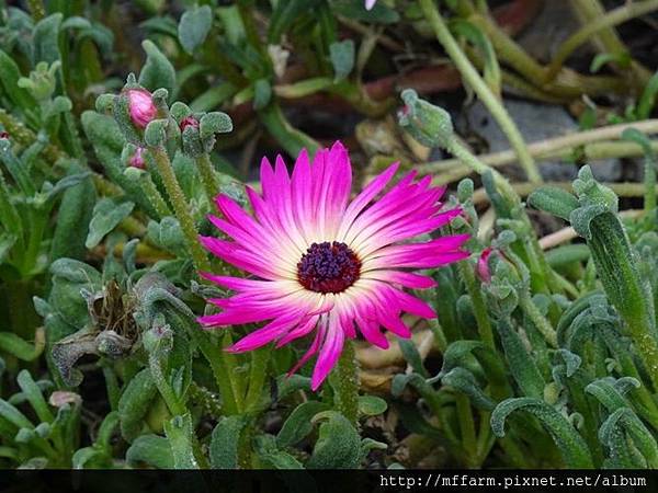 彩虹菊在歷經幾波凍傷後,終於又在晴天中開花了。