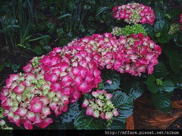 繡球花陸續在春天抽芽開花,並轉變為鮮豔的色彩。