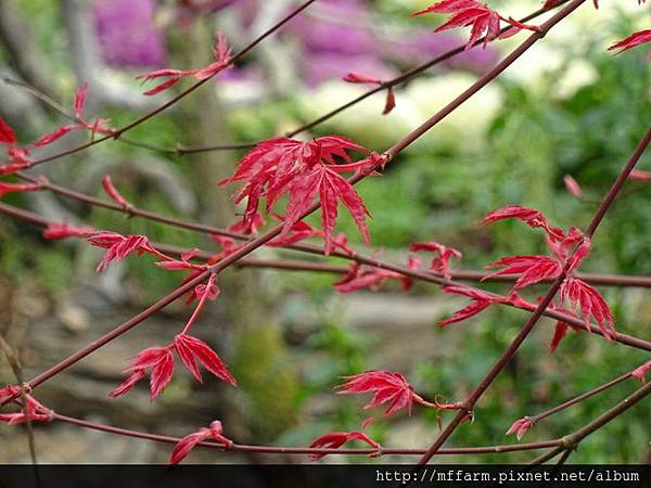 雞爪楓是屬於嫩葉較老葉鮮紅的園藝觀賞樹種。
