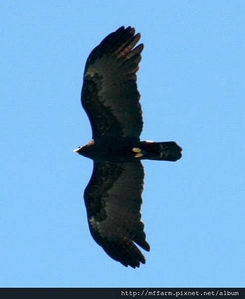 翅膀下有一條白色翼帶的大冠鷲,經常在天際一邊翱翔,一邊鳴叫著。(黃韻如 攝於梅峰)