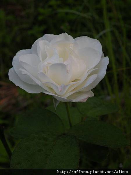 圖說:代表「純潔」與「尊重」之意的白玫瑰。(130828攝於埔里桃米蘿蔔坑)