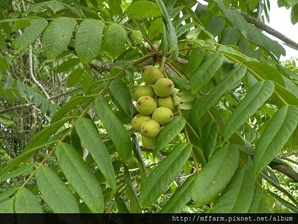 圖說:果實成串的台灣胡桃,新鮮時外頭的果皮呈綠色,看起來就像是桃子一般。(110814攝於梅峰)