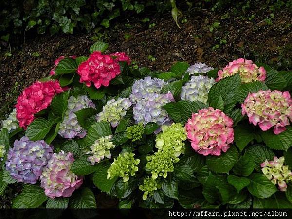圖說:有著各式顏色,顯得繽紛熱鬧的繡球花。(攝於梅峰溫帶花卉區)