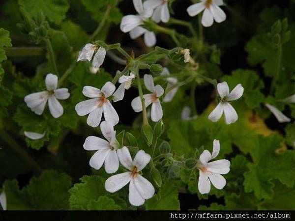 圖說:開著白花的蘋果天竺葵,觸摸葉子會散發蘋果般的香氣。(130311攝於梅峰溫帶花卉區)