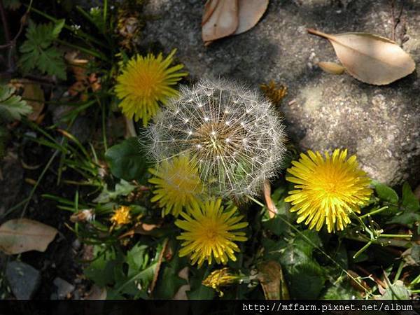 在藍天下,開著黃花的蒲公英結果時,像是棒棒糖的一球白色蒲公英果實,正等待著一陣風的蒞臨,好讓帶著毛絮,像小小降落傘的種子們,可以趕緊展開生命中獨一無二的一趟偉大航程,以尋覓屬於自己安身立命的所在。當人們看見成熟的蒲公英果實時,就會開心的拔起蒲公英的果實,深深吸一口氣後,用力一吹,蒲公英的種子就會漫天飛舞,伴著人們開心的笑聲,呈現一幅出美好而自由的景象,不過西洋蒲公英的數量越來越多,已影響到其他台灣原生植物的生長。屬於菊科家族的蒲公英除了作為童玩外,也被當成藥用植物來使用,在台灣可以見到兩種蒲公英,一種是西洋蒲公英,一種是原生種的台灣蒲公英,長得非常相似,至於如何分辨,可以自己再找時間好好做做功課哦!