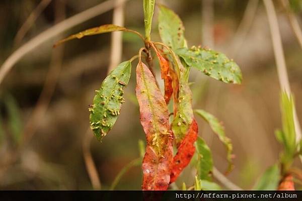 1.杜鵑上的癭,不仔細看可要以為是一隻毛蟲正盤捲在上頭呢!(140422攝於屯原至天池)