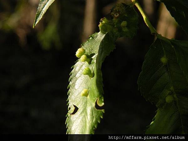 ※圖說:霧社山櫻葉片上方,散布著像是小小女王頭的癭。(130429攝於春陽分場)