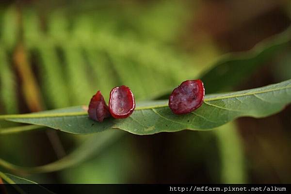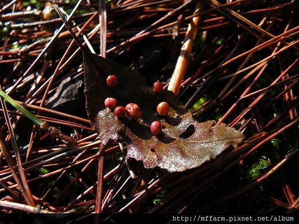 2.赤楊葉片上的癭,則像是一顆顆圓滾滾的紅色高爾夫球。(100622畢祿溪工作站旁)