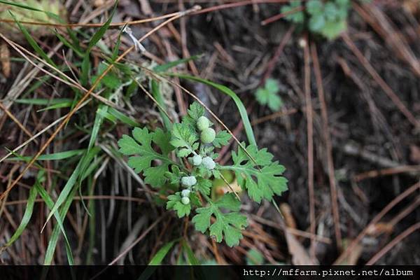 ※圖說:這像小棉花球的癭,趴在艾的葉片上,也像是一隻隻毛茸茸的可愛小玩偶。(140430攝於南湖6.7K登山口往松風嶺路上)
