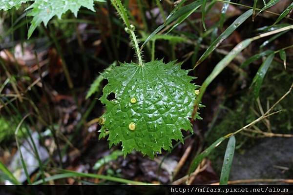※圖說:咬人貓葉片上像是荷包蛋蛋黃的癭。(140504攝於南湖溪山屋往木杆鞍部路上)