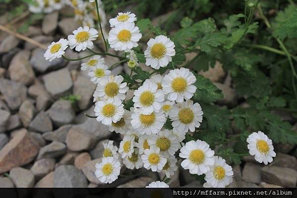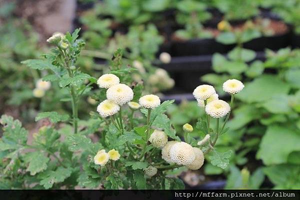 小白菊的花像一顆顆小巧可愛的鈕扣。