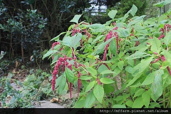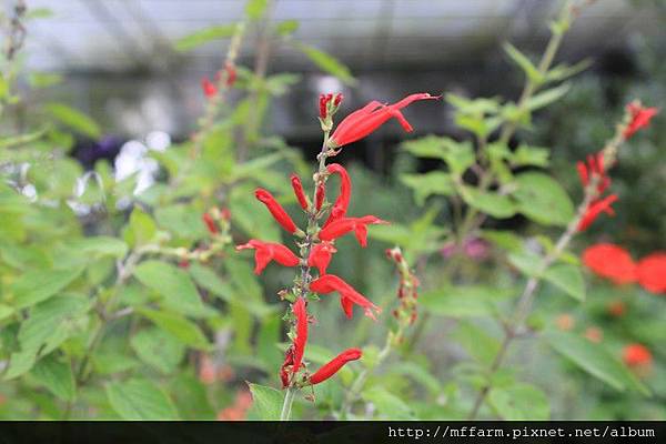 鳳梨鼠尾草的紅花與綠葉相映襯。