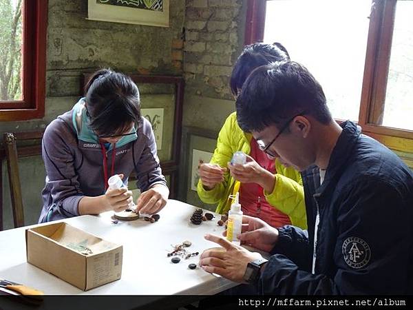 最後一天,在陽光露臉的和煦早晨,志工們跟著農場解說員進行了一趟有趣的森林生態之旅,穿梭其間的他們,聞著、聽著、看著、觸摸著森林的一切,或許幾天來的疲憊依舊,但從他們親手製作的種子DIY成品,我們似乎看到了一則則心靈成長的故事,豐富滿足、喜悅幸福。