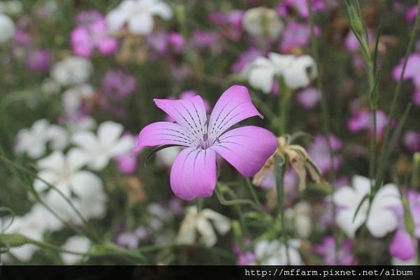 麥稈石竹的花瓣有虛線的紋路。